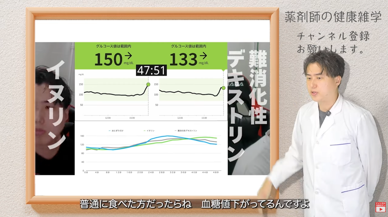 難消化性デキストリン,イヌリン,なにもなしで,おにぎり一個食べたあとの血糖値を比較した動画,実測なのが良い。カーブは難デキのほうがジワジワ効くという先行研究どおり。GPR41とGPR43て有名なんですね。確かに,難消化性デキストリン漬けになってから冬の寒さを感じにくくなった。エネルギーを消費しやすく,脂肪をためにくく,免疫強化され,感染症やがんが遠のく・・・。これって,アンチエイジングよね。