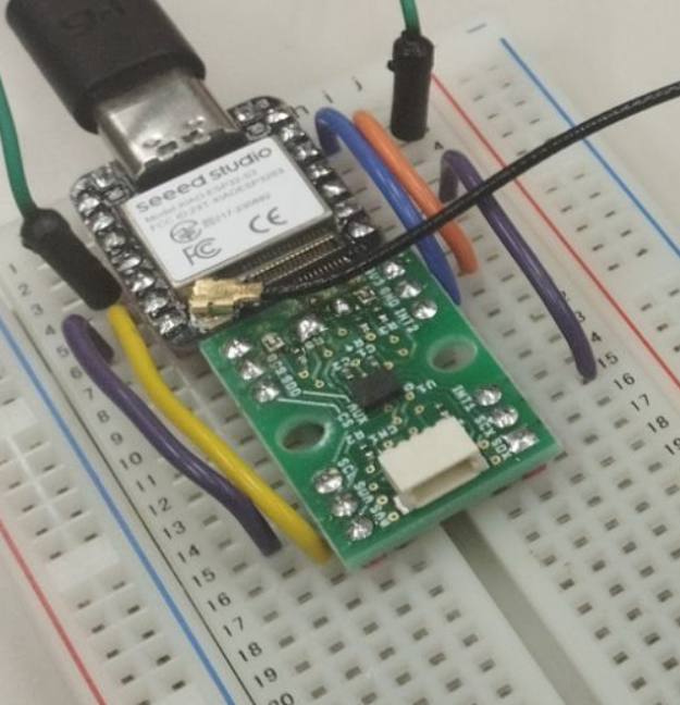 上記設定にしたがって組み上がったトラッカーが、以下のブレッドボードとなる。どうにか動いているがD0未接続ですね。電池駆動にした際、電池の出力を分圧した値をD0に入れると思われる。センサーの設定は重要で、接続に失敗するとトラッカーが起動しなくなり、シリアル・ポートにログが出なくなるので注意。