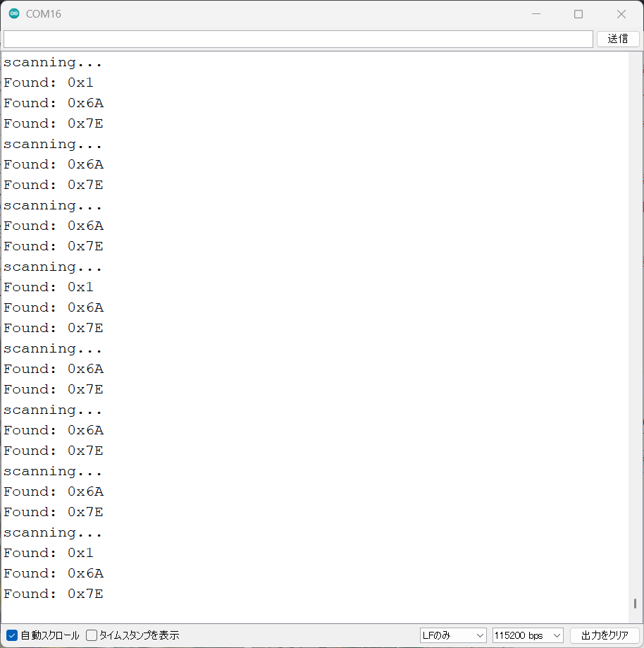 I2C_Scanを書き込み,0x6Aが出てくればセンサーは見えている。