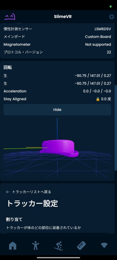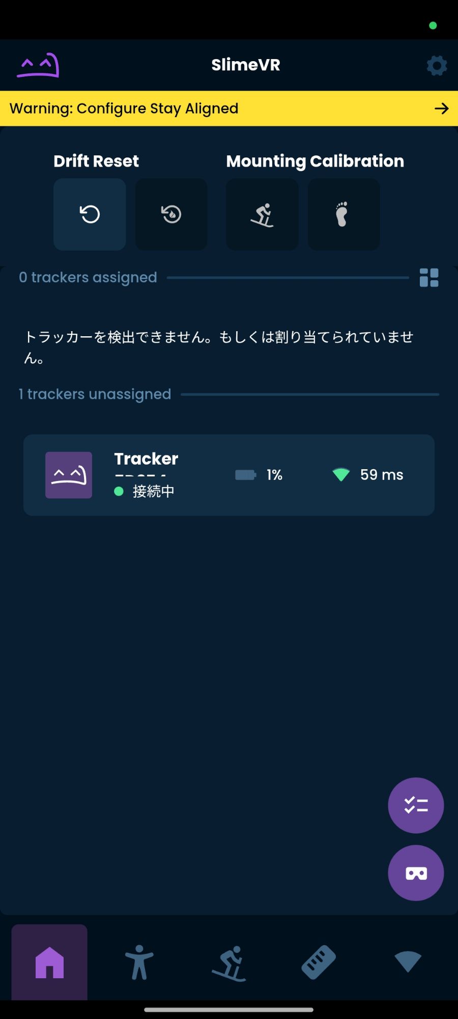 しかし、ハードコードしたSSIDとパスでアクセスポイントが見つけられない問題に直面する。ルータ側もチェックするが問題はなさそうであり、結局ソースコード(wifihandler.cpp)に手をいれるはめに。具体的には、ESP8266じゃないとき(つまりESP32である今回のようなとき)if (phyModeG) {return false;}となり、問答無用で何もしない設定になっていた。ここに接続用のコードを追記することでサーバーへの接続が可能となり、スマホのSlimeVRアプリにトラッカーを出すことに成功した。同じソースコードでS3も試したが、こちらはどうも様子がおかしく信号が安定しない。今回はC3で行くか。
