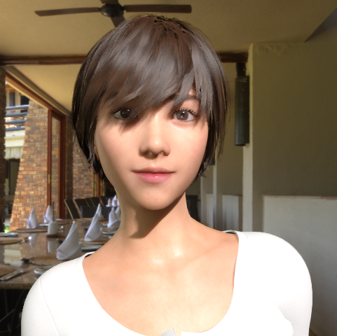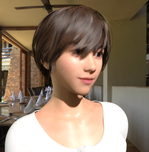 ロングヘアーのヒトは印象がすっかり変わってしまい、モードな雰囲気に・・・。影の濃さを変えるには、環境光(HDRI)のExposureを変える必要があるようだ。が、そうすると背景も変わってしまう。難しいところだ。HDRPの画作りが真実に近いと言うなら、見る側もそれに慣れなければいけないのか。でも全員に言われそう。「前髪がジャマ」って。それは、IdaFaber(髪アセット作者)に言ってくれ。
