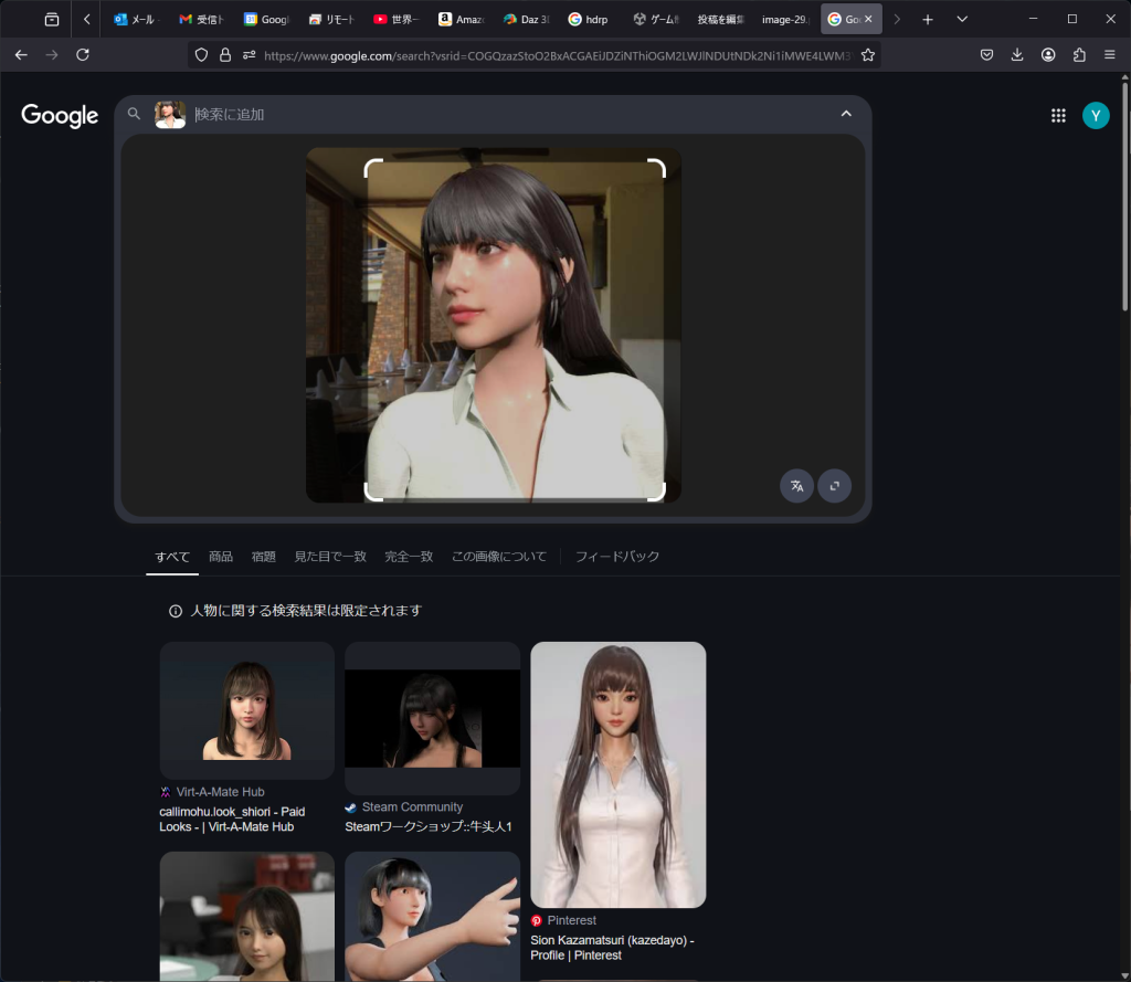 ところで、HDRPの作画を画像検索にかけると、高い確率で「いかがわしいCG」に認定されてしまう。しかし、ポニーテールとショートカットは、とうとうGoogleに「個人の写真は検索できない(つまり人間)」認定をうけた。やった。残念ながらロングヘアーは相変わらずいかがわしい画像認定であった。