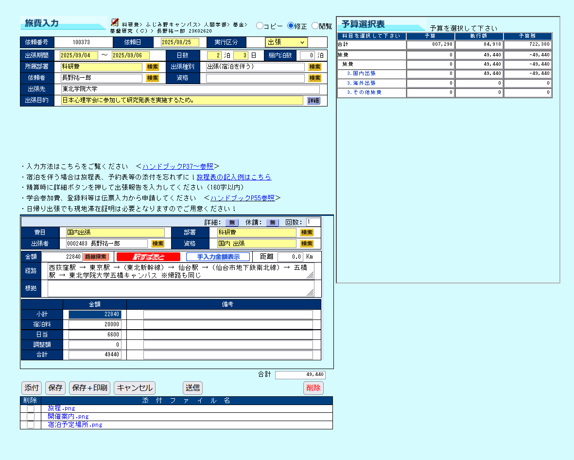科研費の学会参加は事前に申請が必要なようです。文京学院大学科研費ハンドブックの33ページあたりから記載がありますが,基本的には,1)申請画面で必要な情報を多少記入し,2)根拠となる添付ファイルを添付し,3)金額を記入して送信,だけのようです。