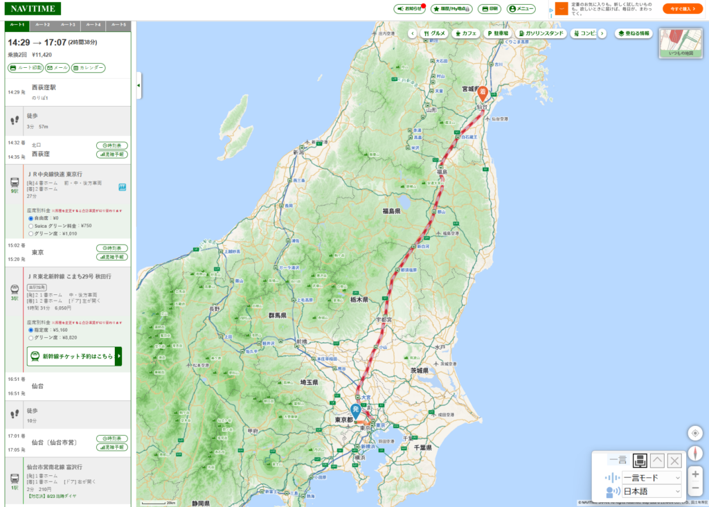 ・西荻窪駅 → 東京駅 →(東北新幹線)→ 仙台駅 →(仙台市地下鉄南北線)→ 五橋駅 → 東北学院大学五橋キャンパス ※帰路も同じ