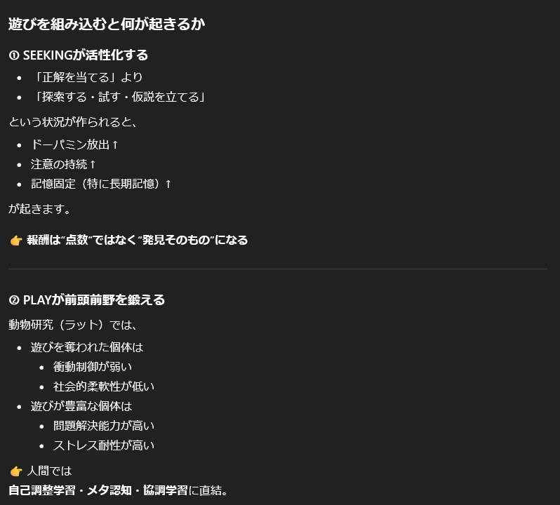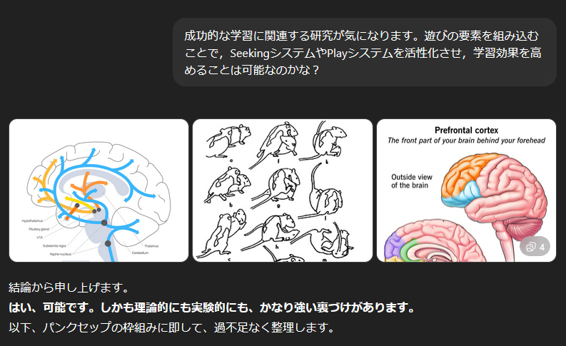 いいぞChatGPT。目からウロコだ。学習には情動が必要なんだ!授業構成上,大きなヒントがあるような気がする。