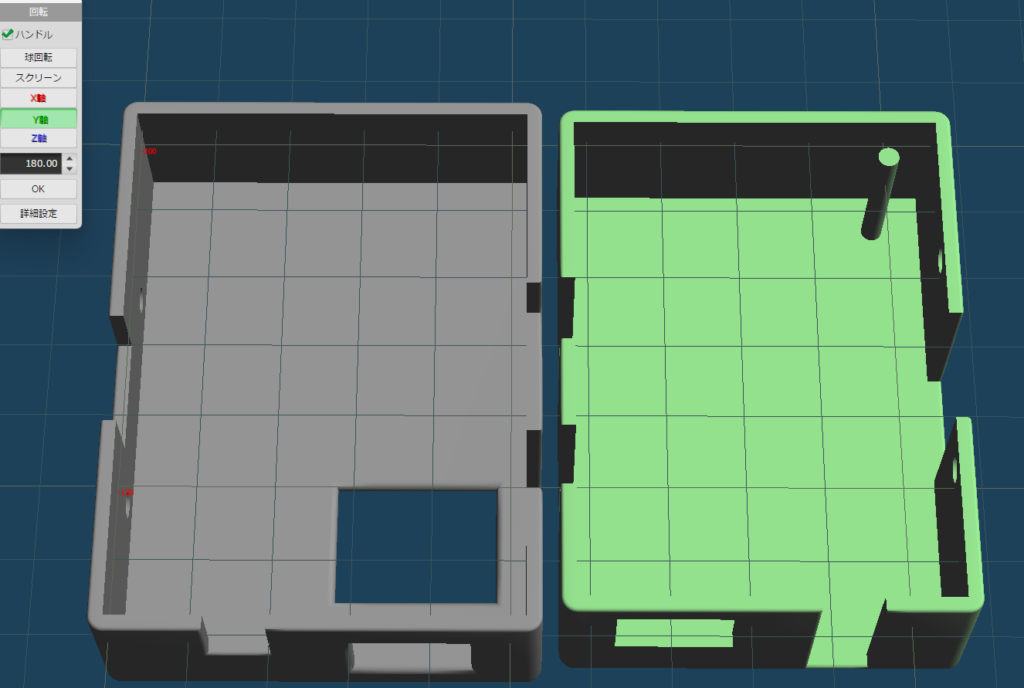 使用するソフトウェアによってはサイズが異なる可能性があるので,「測定器ケース-250526」の「ECGcase-ue-250526.stl」の最も長い辺が75mmになるように設定し,その際の倍率を他のファイルにも適用して下さい。