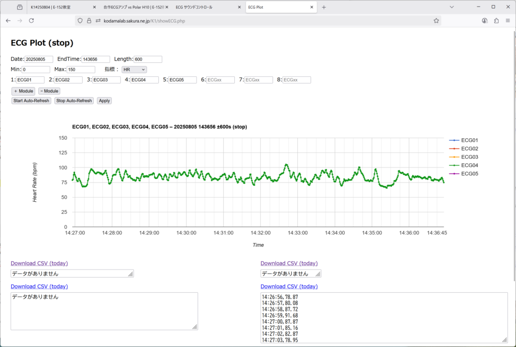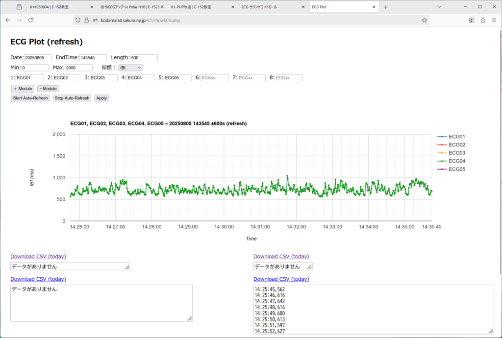 | showECG.php | 上記の.csv形式のデータを参照してwebに表示 |