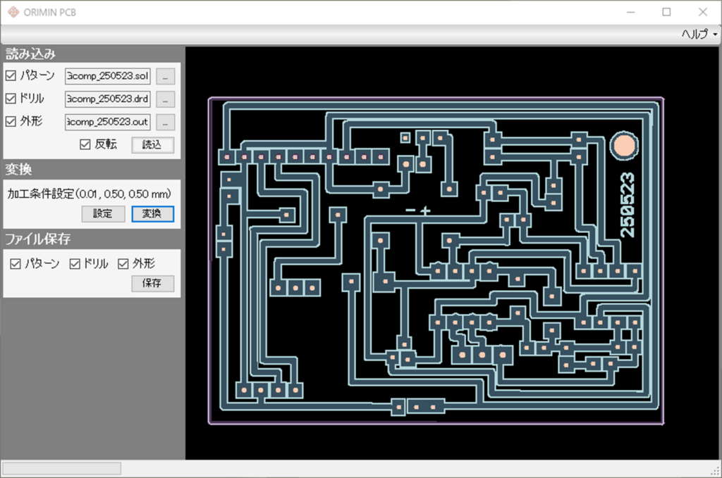 | ECGcomp_250523.drd | orimin PCBのドリルにいれます。 |