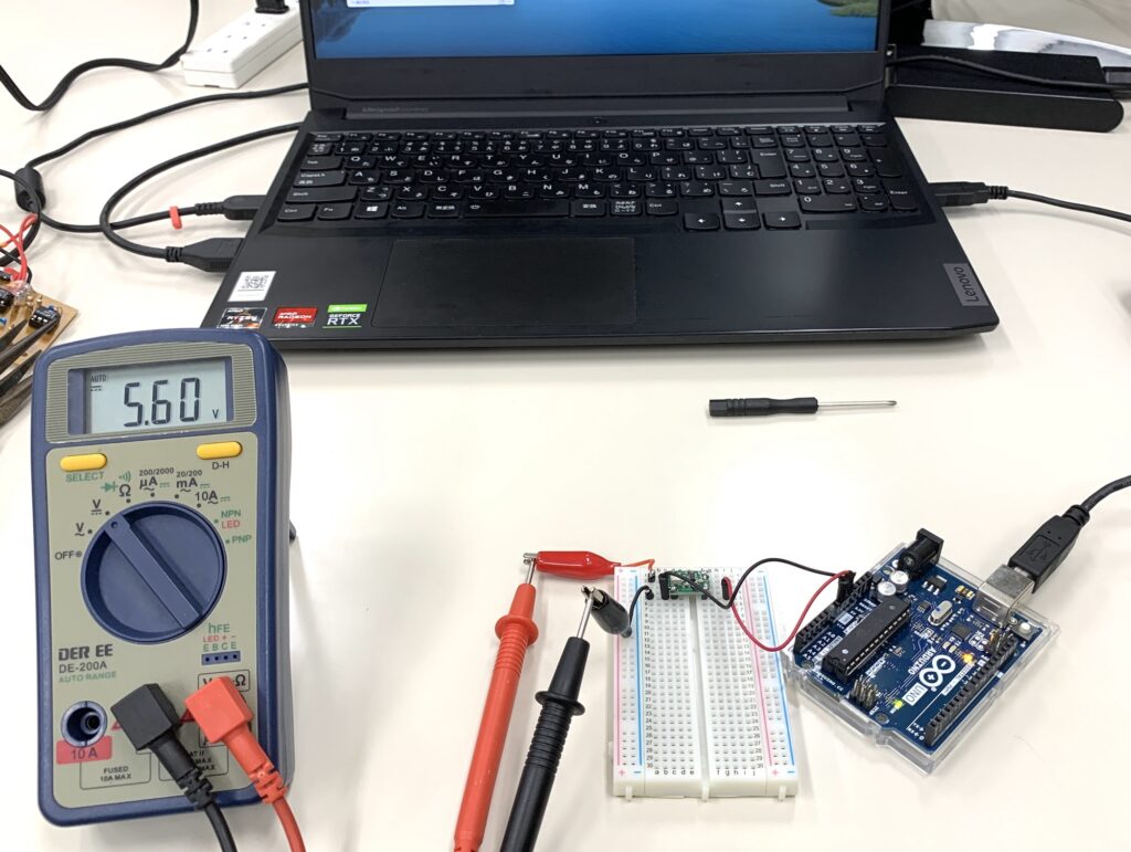 ③テスターの直流電圧(V-)に合わせて5.6Vになるよう電圧を調整する.