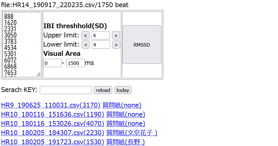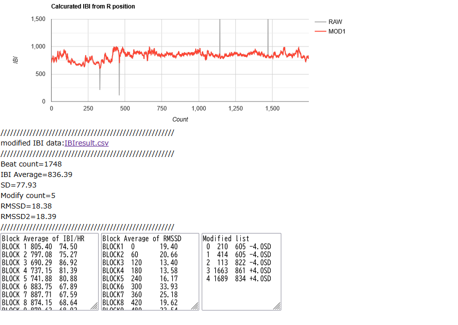 Rpinputは,M2HRの補正専用として開発されている(データはIBIを1個ずつ加算する方式).ネックレス式心電図アンプから取得したデータを処理する際は,下記のPythonプログラムを実行してRpinput用のデータシートに修正してから外れ値の処理を行う.